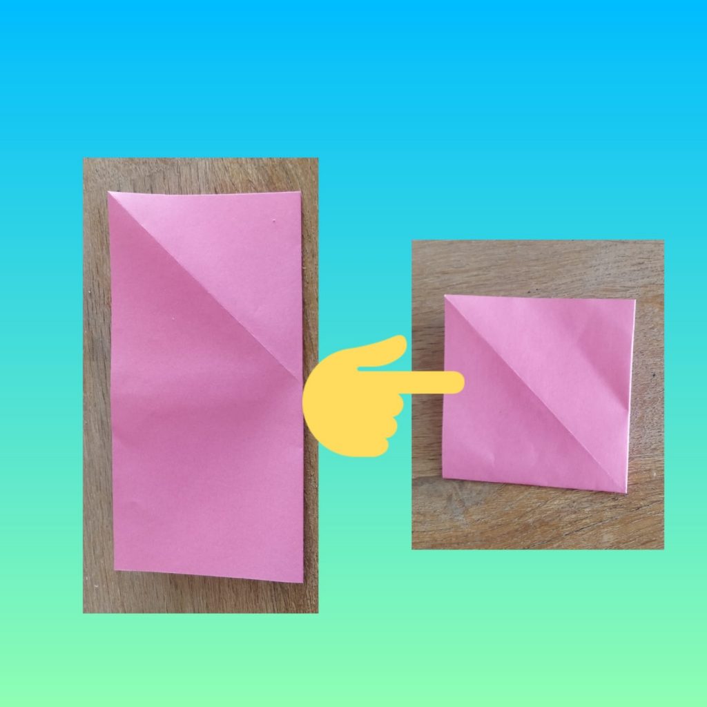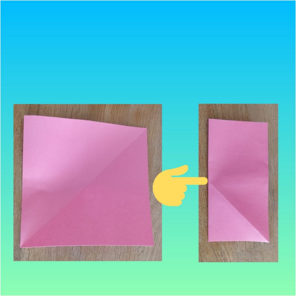 Step 1- Fold a square piece of paper in the middle to make a rectangle.