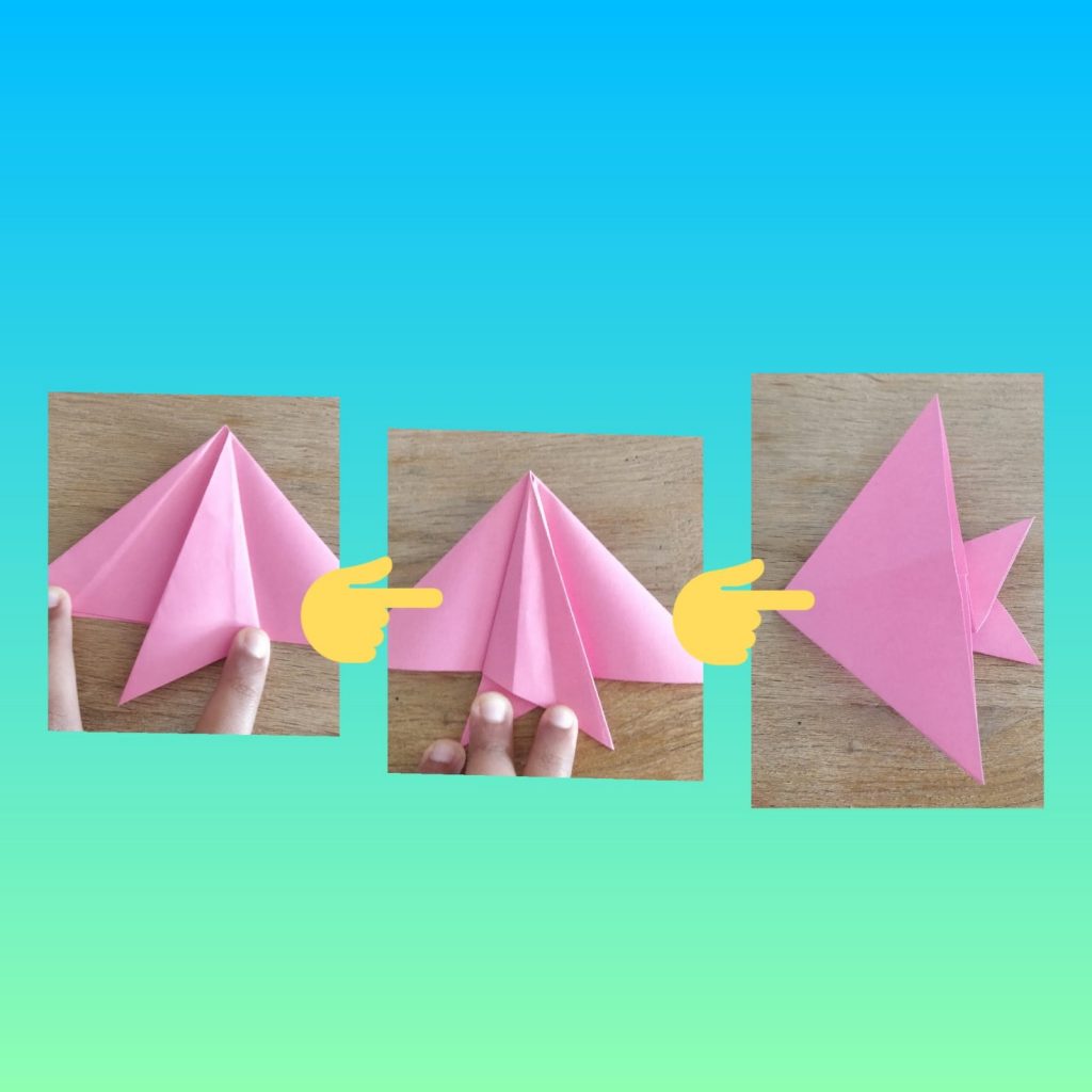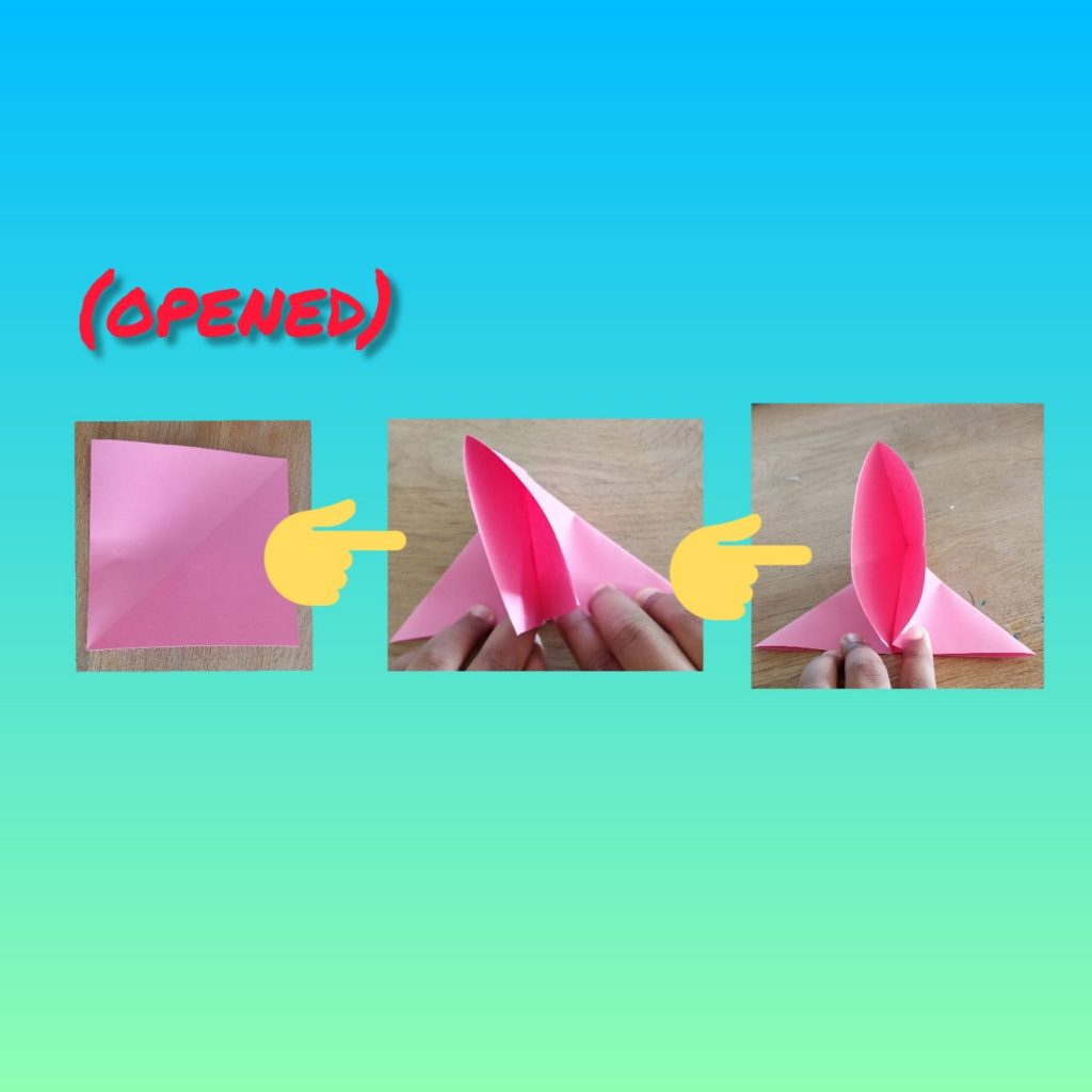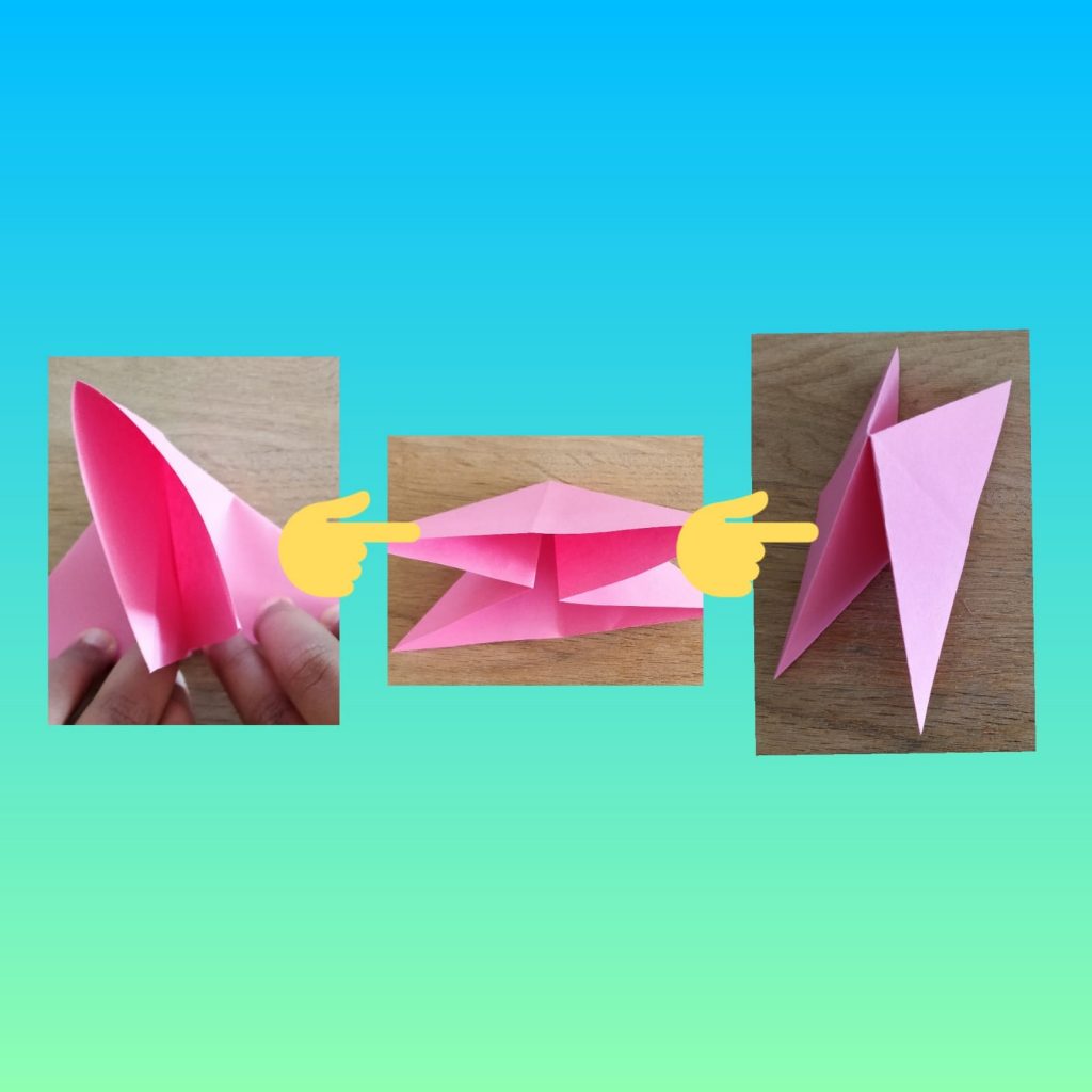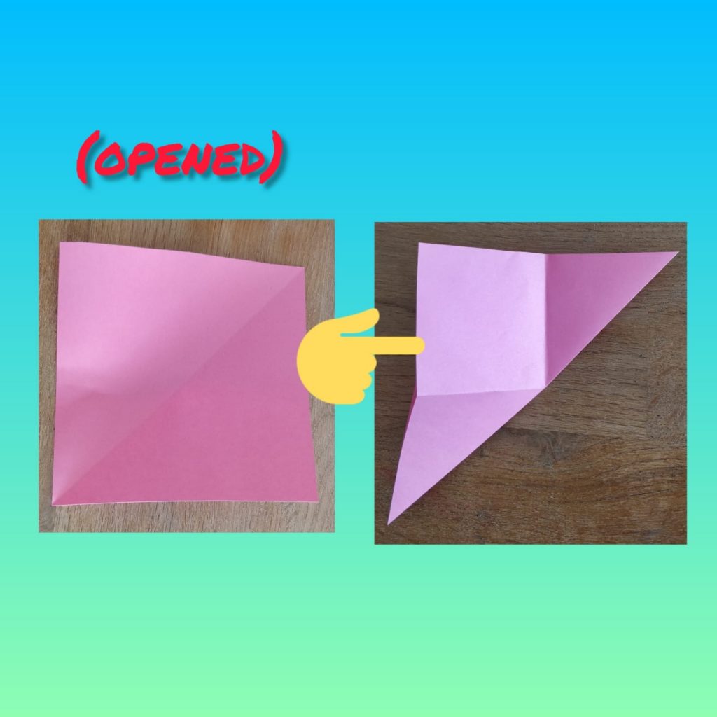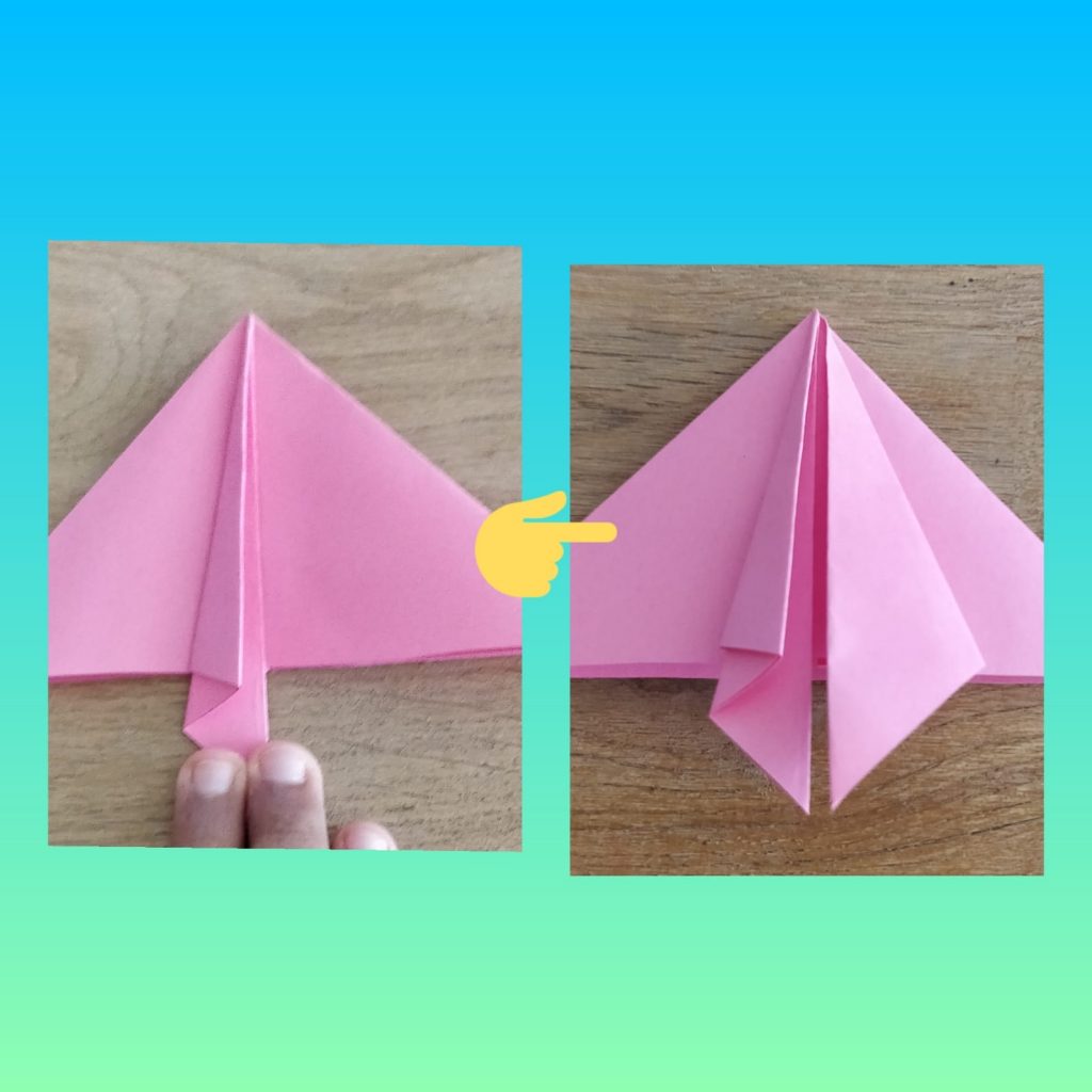 Step 5- Now open it up. After youโve done that, take the horizontal fold and pull it down.