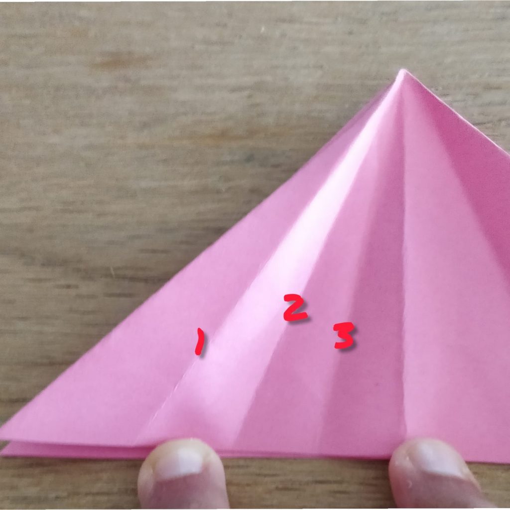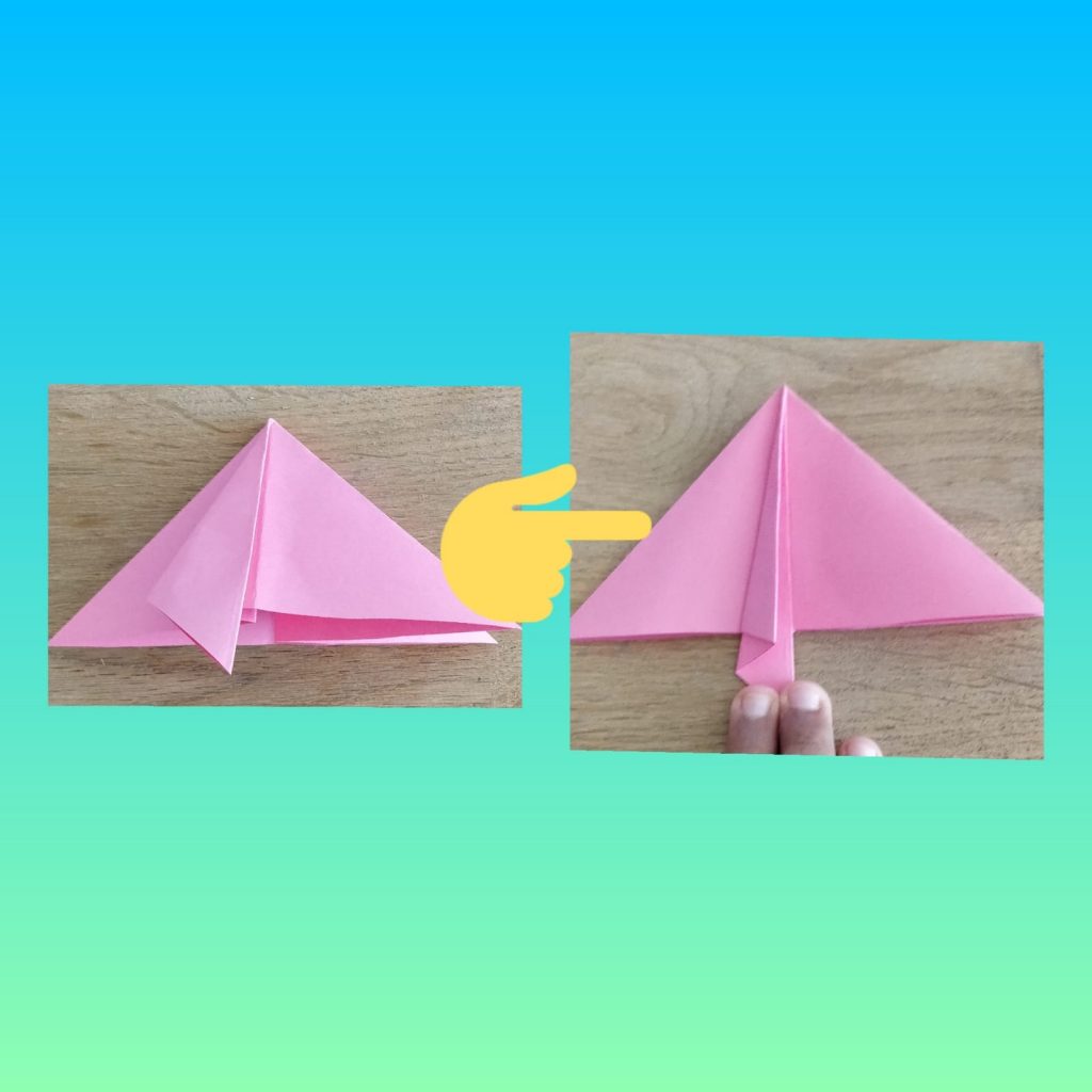 Step 9- Next, fold the other half of the triangle down the centre line.